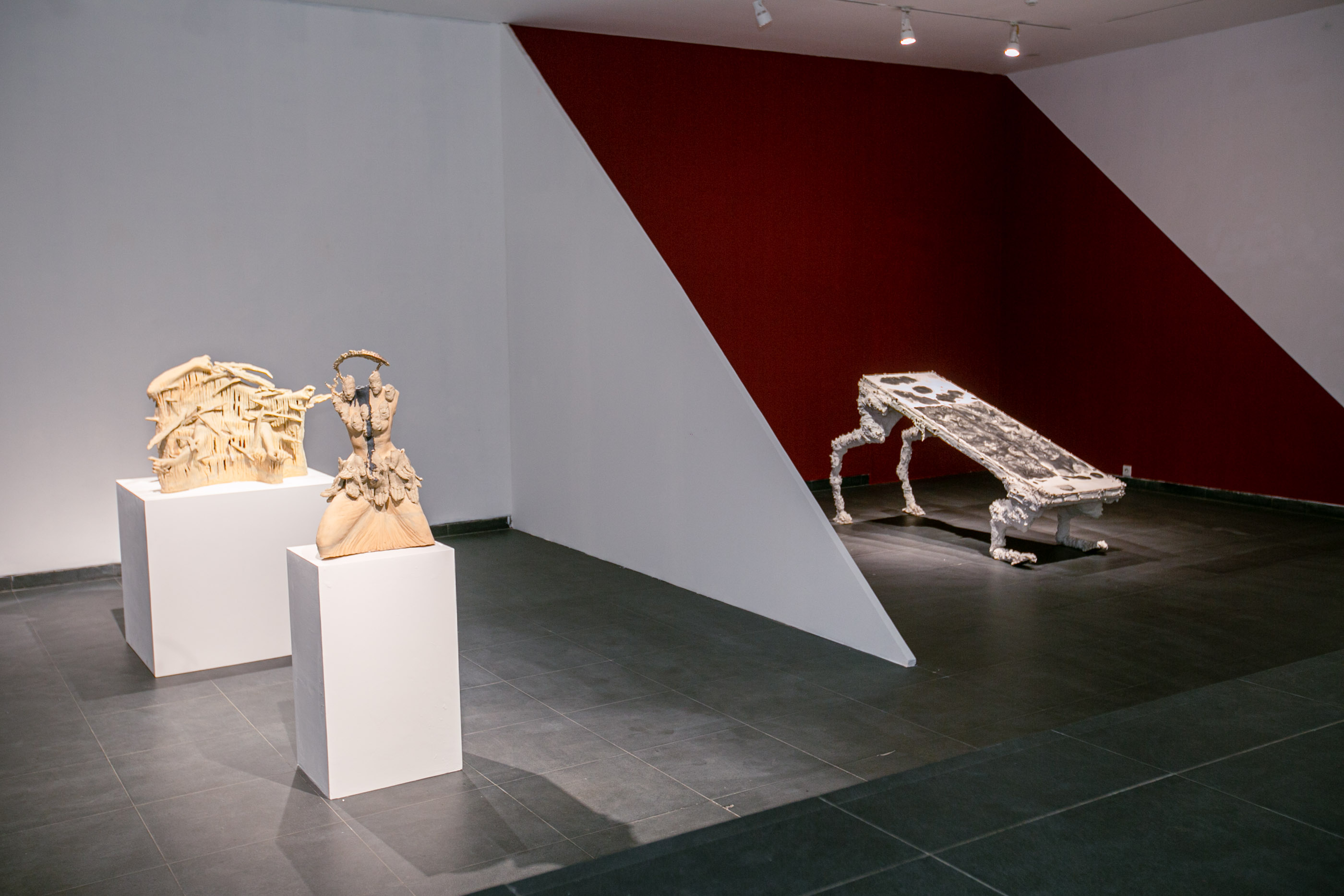 It was during our first conversation in preparation for this exhibition that my attention settled more sharply on the materials themselves. Louise with plaster; Dzikra with clay. I had already encountered this distinction when they exhibited together at Orbital Dago (Troublemaker Doppelganger, 2024). But it was only in the course of our discussion at their studio that I began to realise there was something else. There is something particular in the relationship between artist and material, in the case of Dzikra and Louise.