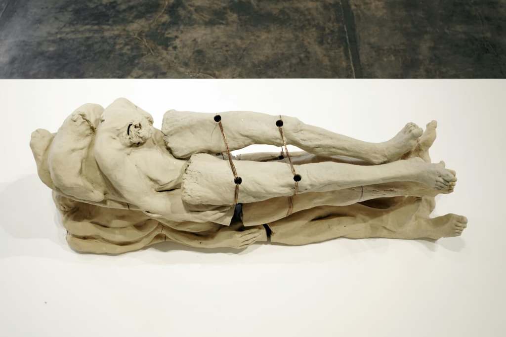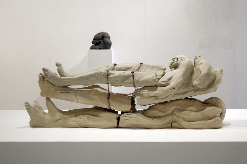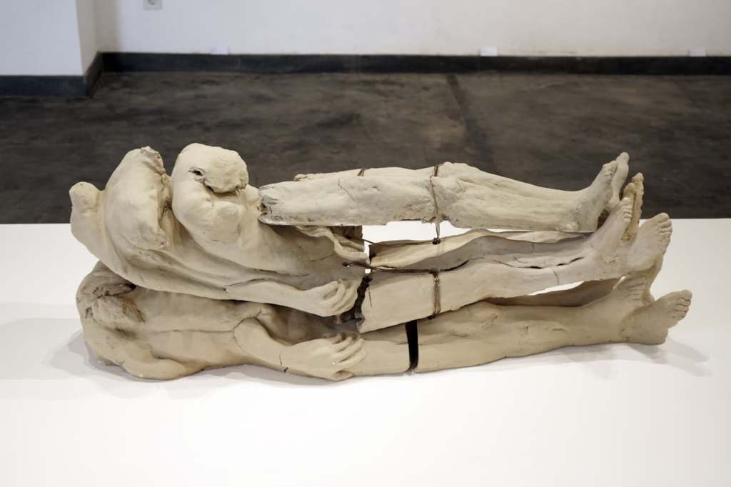 Ceramic (Stoneware), copper rod, 140 x 36 x 48 cm